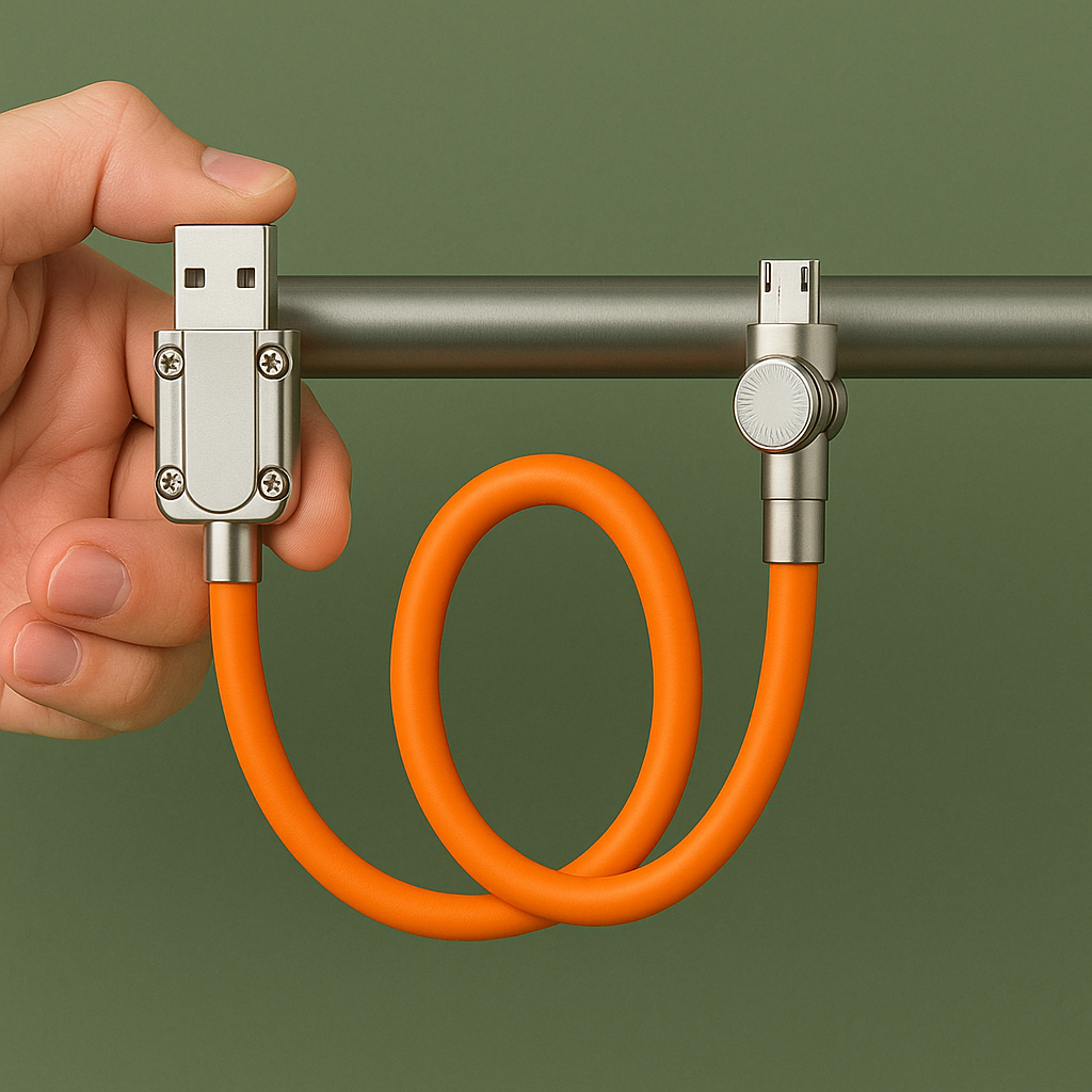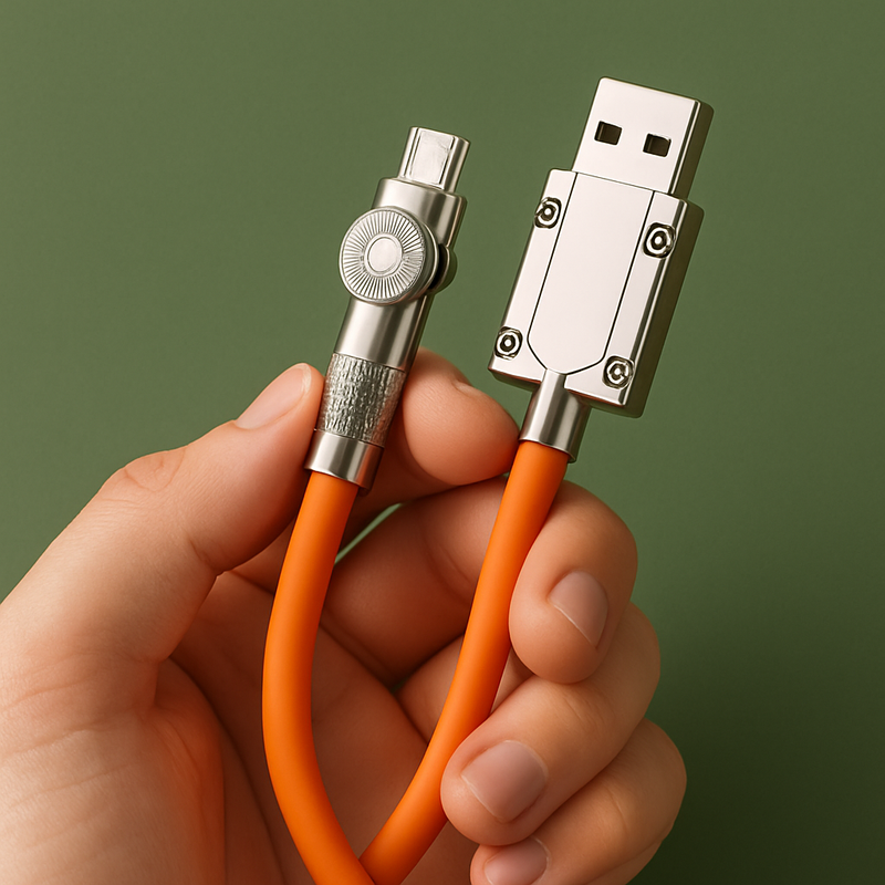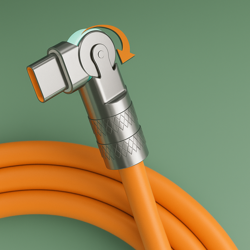 Elastyczność i komfort użytkowania – Dzięki obrotowemu złączu 180°, kabel dopasowuje się do Twoich potrzeb: ładowanie w czasie gry, rozmowy, przeglądania internetu czy pracy przy biurku staje się wygodne i bezproblemowe. Już nigdy nie będziesz musiał walczyć z niewygodną pozycją kabla.